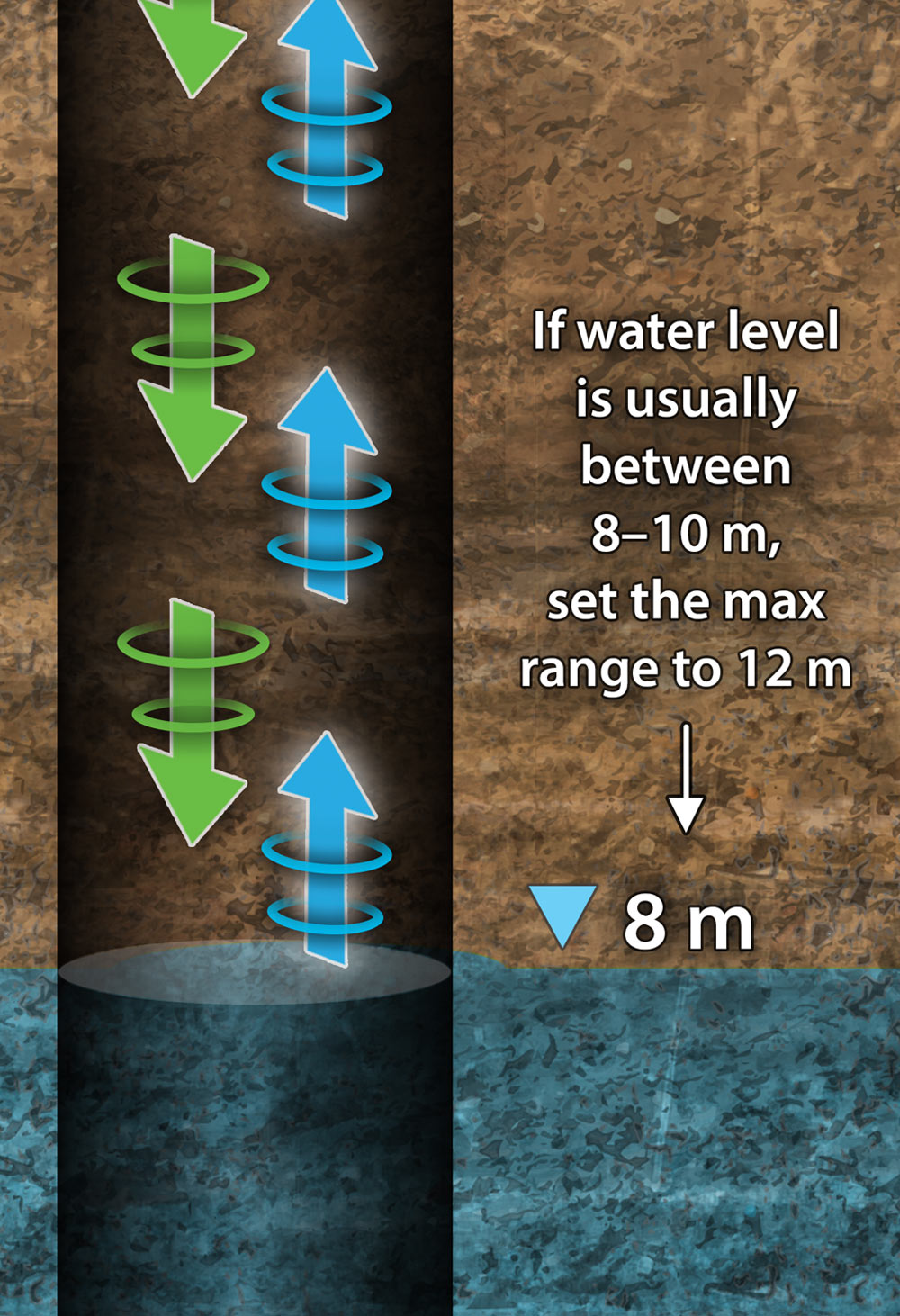 L'onda sonora perde energia mentre viaggia, e ancora di più se l'involucro del pozzo è ruvido o poroso. Per compensare questo fenomeno, il freatimetro ad ultrasuni è in grado di aumentare il suo guadagno con il tempo di ascoltare i segnali più deboli. Un aumento del guadagno può causare problemi se la sonda rimane in ascolto per un tempo lungo. Il guadagno diventerà così elevato che il rumore della pompa o i rumori esterni al pozzo potrebbero superare l'intensità dell'impulso. È disponibile una impostazione che consente di regolare l'intervallo massimo di ascolto, per esempio se una pompa è installata a 50 m di profondità, è sufficiente impostare un intervallo massimo inferiore a 50 m per evitare interferenze da tale profondità.
