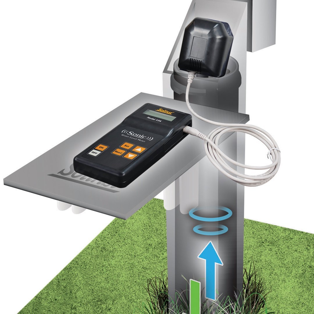 Il Sonic Water Level Meter 104, funziona ad ultrasuoni: una onda sonora viene inserita all'interno del tubo o del pozzo e viene misurato il tempo impiegato per raggiungere la superficie dell'acqua e a ritornare alla sonda. La distanza viene calcolata moltiplicando il tempo impiegato per la velocità del suono e dividendola per due. Poichè la velocità del suono varia con la temperatura, la sonda è dotata anche di un sensore di temperatura che le permette di adattarsi alle diverse variazioni.